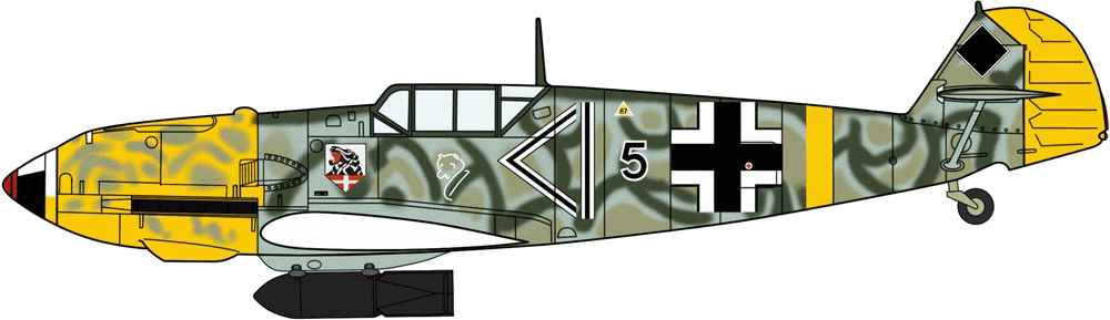 The Bf 109E-4/B “Jabo” is fighter-bomber variant of the E-4, first used against shipping in the Channel during July 1940. It could carry one 250kg or four 50kg bombs. One Staffel in each Jagdgeschwader was converted to the E-4/B.